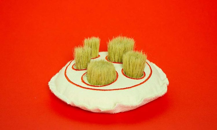 This design consists of a variety of tools for kids to do so. Dressed in paint-proof overalls, they can do anything they want with a very big canvas. Play and coincidence are important principles. This canvas will subsequently serve as a source of textile for child’s clothing, the profits of which will flow into new workshops. A fully circular project.